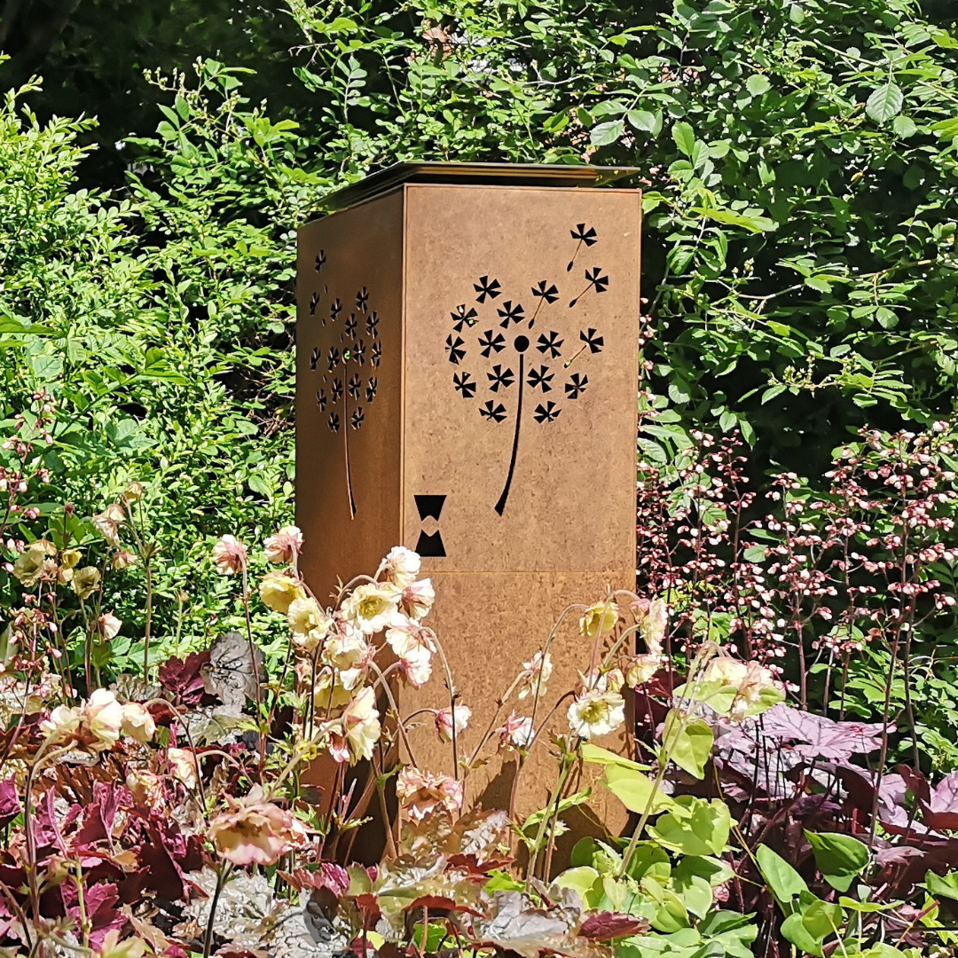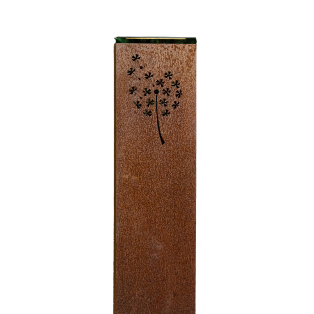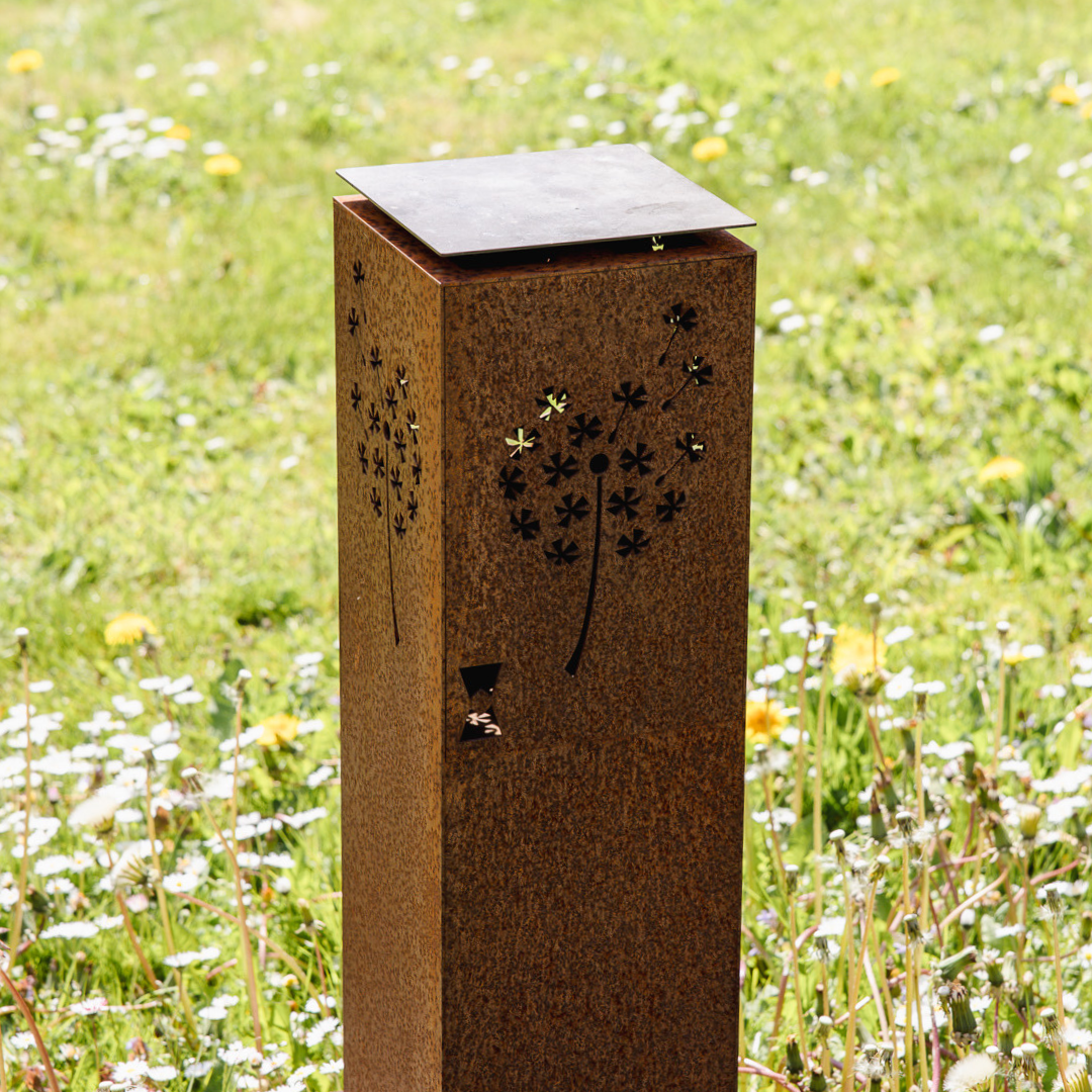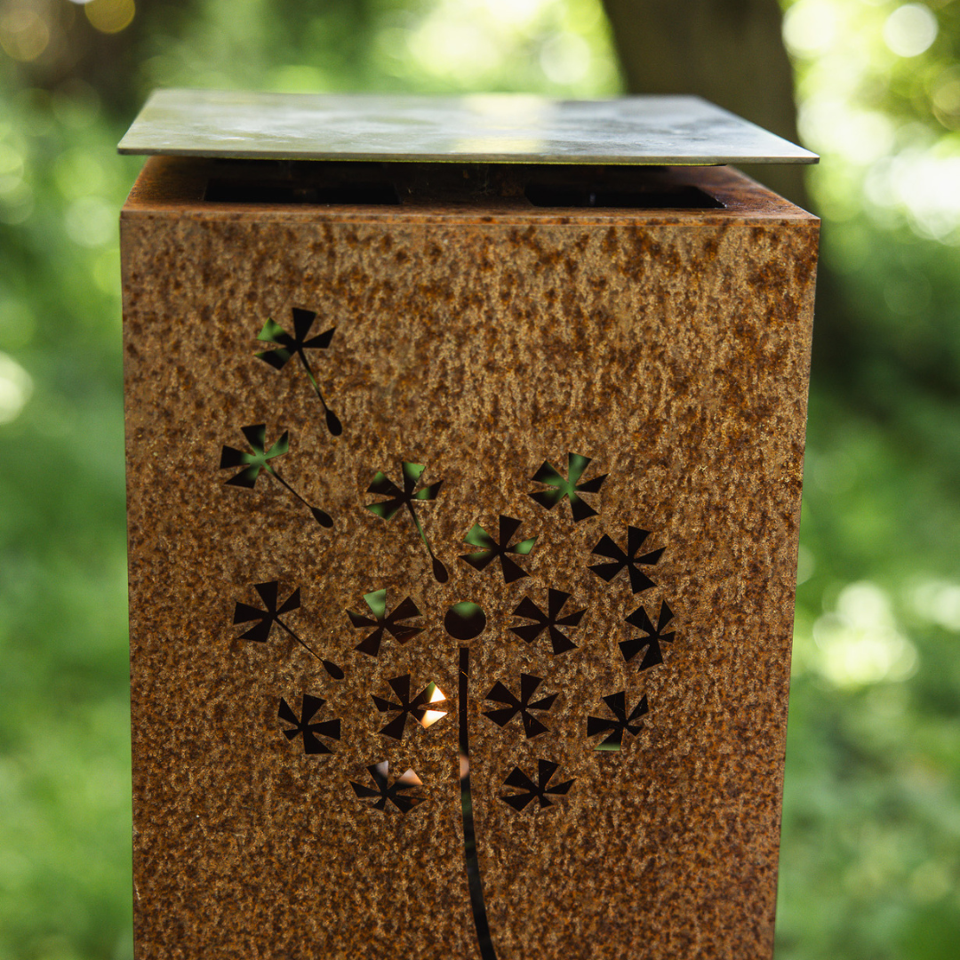Lanternen er fremstillet i cortenstål, som med tiden får en naturlig rustfarvet overflade og kræver minimal vedligeholdelse.