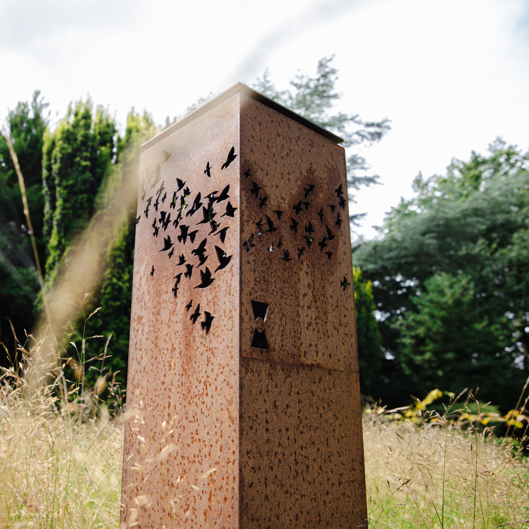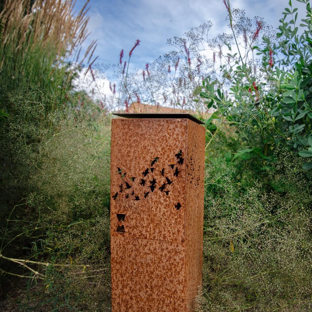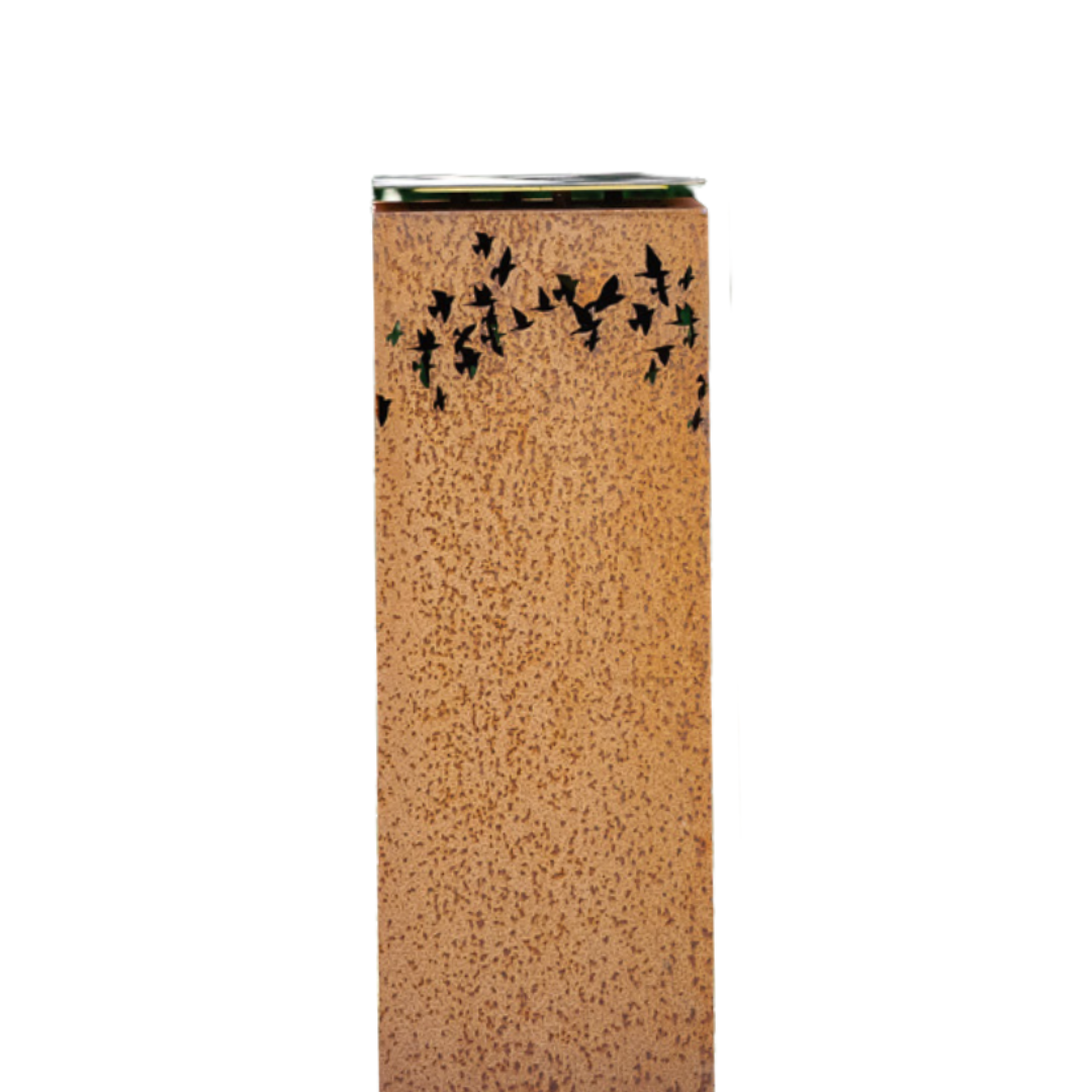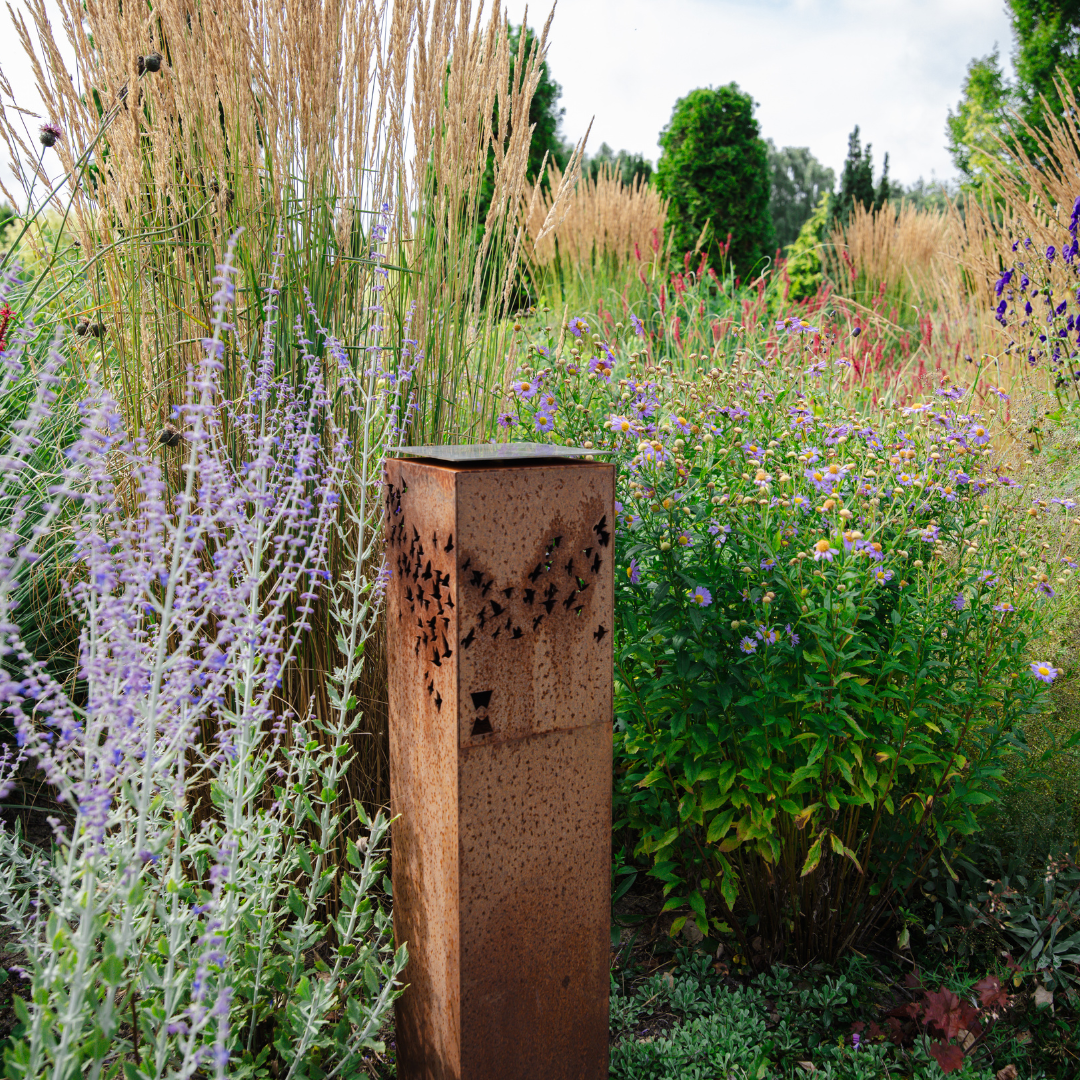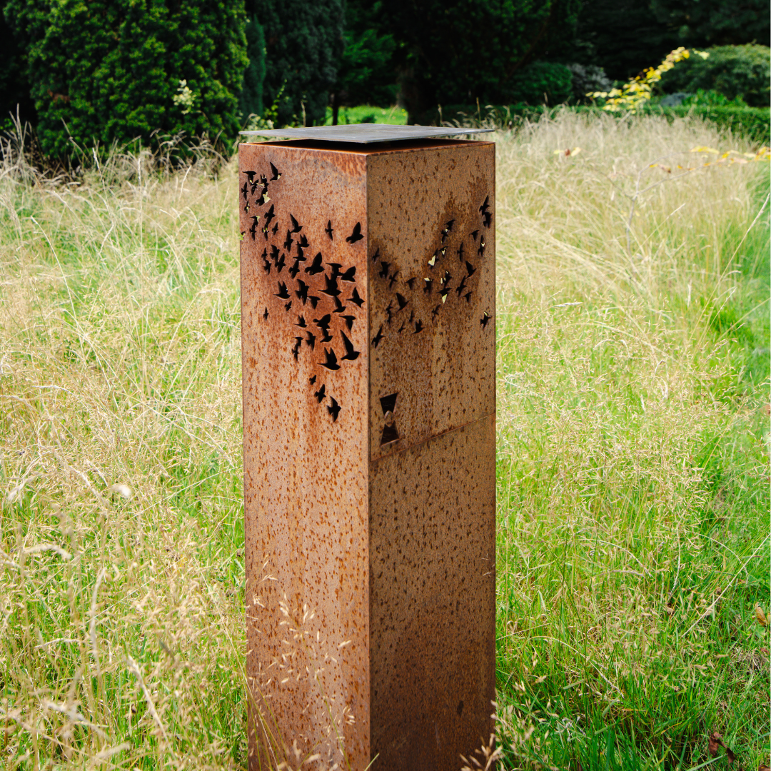 Lanternen er fremstillet i cortenstål, som med tiden får en naturlig rustfarvet overflade og kræver minimal vedligeholdelse.